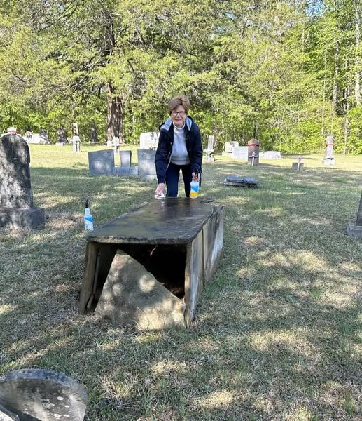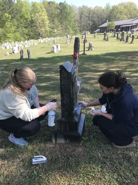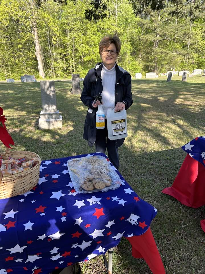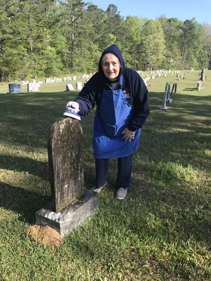 Josiah Brunson Chapter, NSDAR Daughters, along with Springville High School Beta Club members, engaged with cleaning 32 gravestones at Pleasant Hill Cemetery in April 2025.